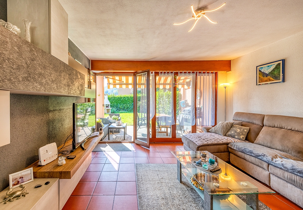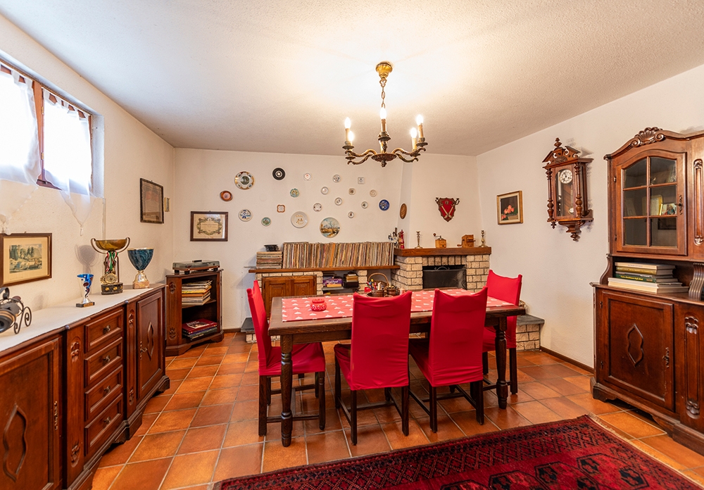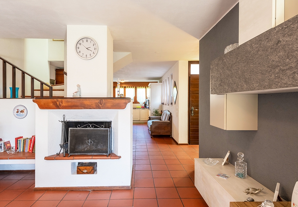 – soggiorno con camino ed uscita sul portico e giardino con barbecue.