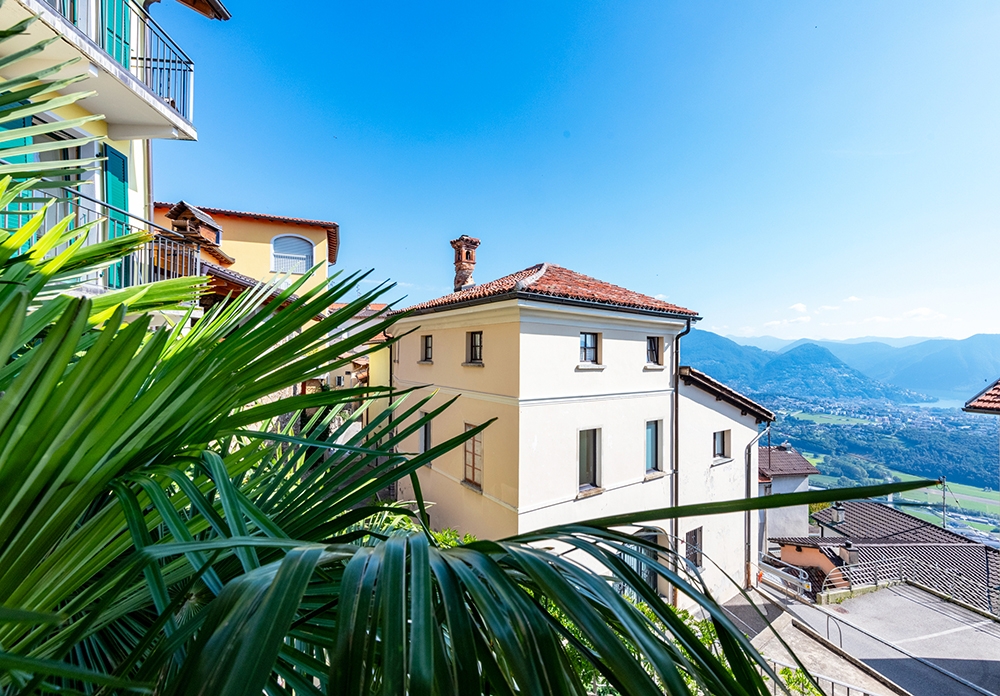 architettura ticinese su due livelli con ampia terrazza soleggiata.